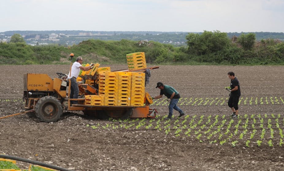 Ouvriers agricoles à Montesson, dans les Hauts de France le 27 avril 2020. Ludovic MARIN / AFP